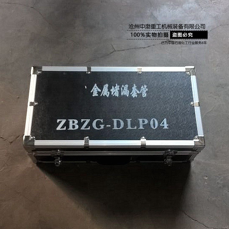 金屬堵漏套管分為:“不銹鋼金屬堵漏套管” 和 “防爆無火花銅合金金屬堵漏套管” 兩種配置,鋁合金工具箱包裝。
