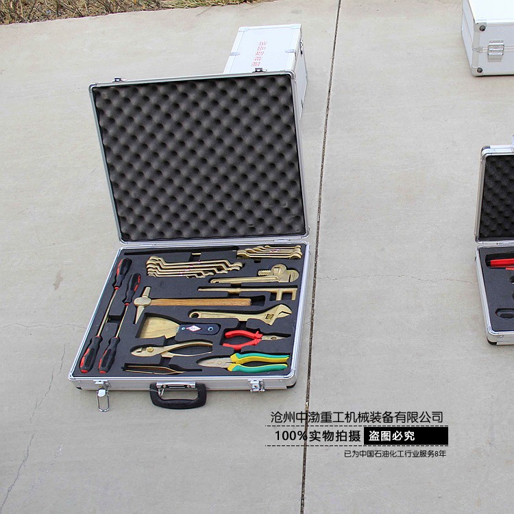 公司生產(chǎn)的防爆工具箱種類齊全,包括:加油站用組合工具箱、油庫用組合工具箱、天然氣用組合工具箱、礦山搶險(xiǎn)用組合工具箱、檢維修用組合工具箱、成品油計(jì)量工具箱等。  工具箱規(guī)格:7件套、10件套、12件套、16件套、24件套、30件套、32件套、36件套、42件套、50件套、56件套、100件套等。公司還可以根據(jù)客戶的實(shí)際工作需要組合常用的防爆工具套裝。   公司生產(chǎn)的防爆工具有400余個(gè)系列近萬種規(guī)格。該產(chǎn)品能有效的防止工具與工作物相互摩擦、撞擊時(shí)產(chǎn)生的可燃性爆炸,確保財(cái)產(chǎn)和人身安全。廣泛用于石油、化工、礦山、防恐怖、防磁場(chǎng)、煤礦、采氣、油氣管道、發(fā)電、冶金、航空、儲(chǔ)運(yùn)、制藥、制氣、塑料、化纖、皮革、煙火、爆竹等行業(yè)。