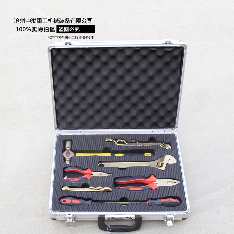 公司生產(chǎn)的防爆工具箱種類齊全,包括:加油站用組合工具箱、油庫用組合工具箱、天然氣用組合工具箱、礦山搶險用組合工具箱、檢維修用組合工具箱、成品油計量工具箱等。 工具箱規(guī)格:7件套、10件套、12件套、16件套、24件套、30件套、32件套、36件套、42件套、50件套、56件套、100件套等。公司還可以根據(jù)客戶的實(shí)際工作需要組合常用的防爆工具套裝。 公司生產(chǎn)的防爆工具有400余個系列近萬種規(guī)格。該產(chǎn)品能有效的防止工具與工作物相互摩擦、撞擊時產(chǎn)生的可燃性爆炸,確保財產(chǎn)和人身安全。廣泛用于石油、化工、礦山、防恐怖、防磁場、煤礦、采氣、油氣管道、發(fā)電、冶金、航空、儲運(yùn)、制藥、制氣、塑料、化纖、皮革、煙火、爆竹等行業(yè)。