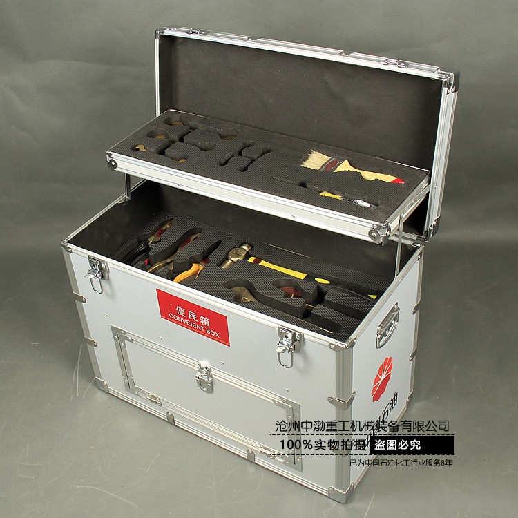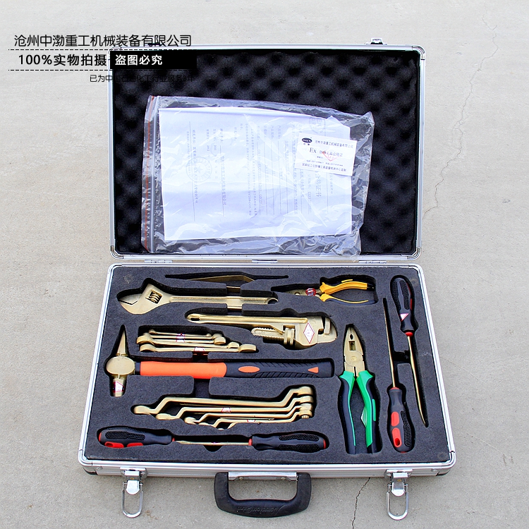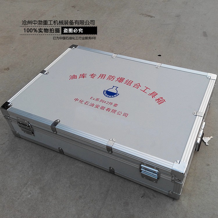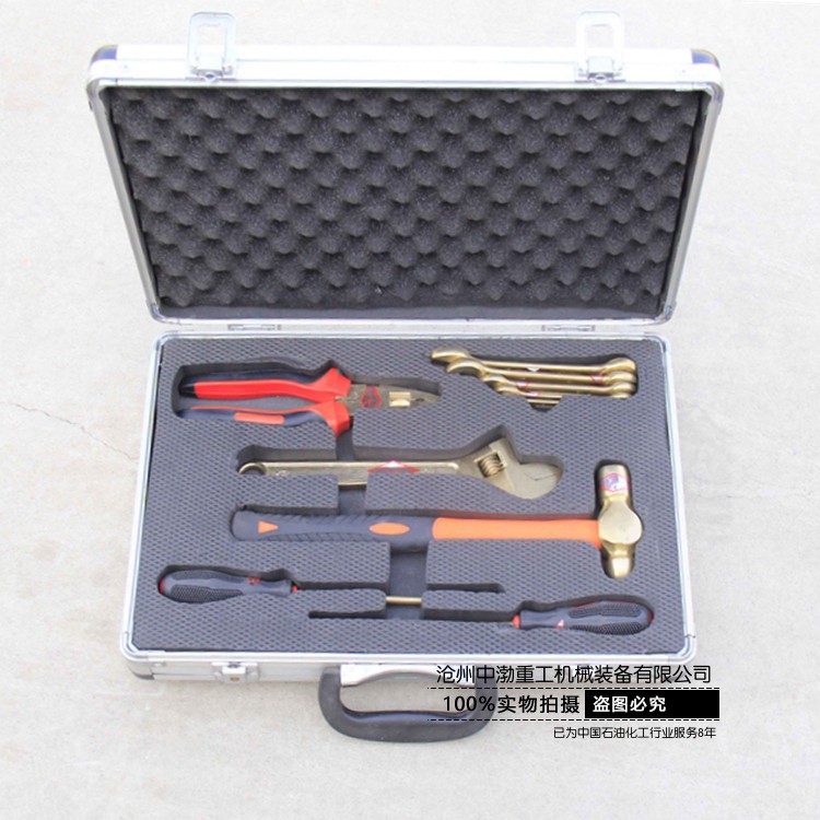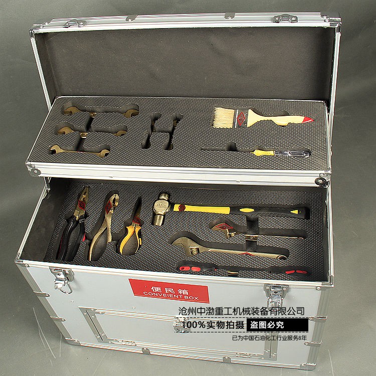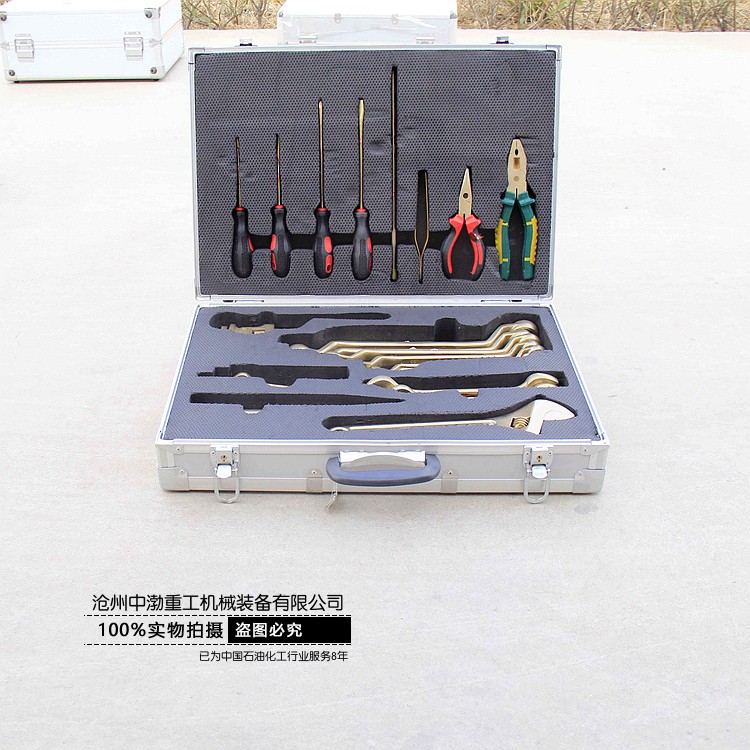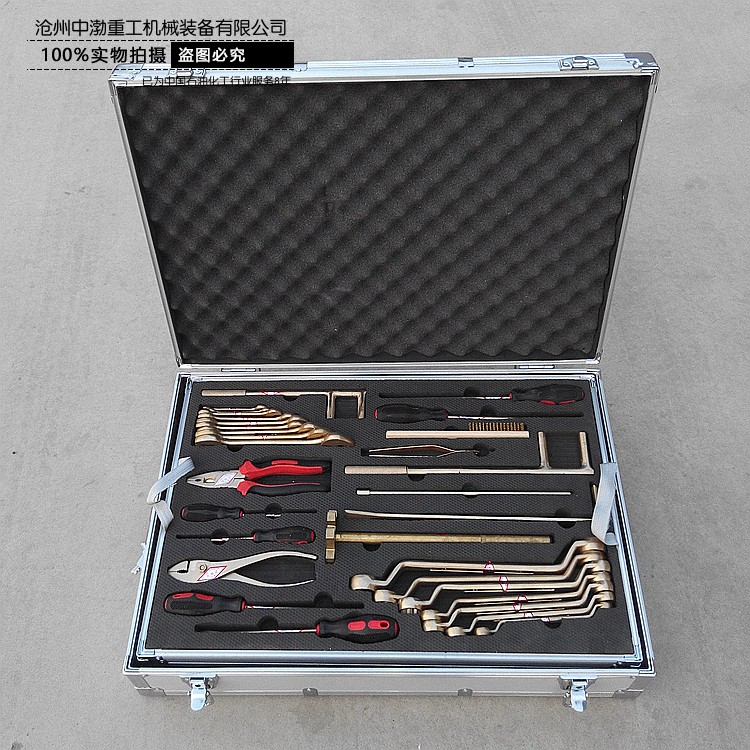 公司生產(chǎn)的防爆工具箱種類齊全,包括:加油站用組合工具箱、油庫(kù)用組合工具箱、天然氣用組合工具箱、礦山搶險(xiǎn)用組合工具箱、檢維修用組合工具箱、成品油計(jì)量工具箱等。  工具箱規(guī)格:7件套、10件套、12件套、16件套、24件套、30件套、32件套、36件套、42件套、50件套、56件套、100件套等。公司還可以根據(jù)客戶的實(shí)際工作需要組合常用的防爆工具套裝。   公司生產(chǎn)的防爆工具有400余個(gè)系列近萬(wàn)種規(guī)格。該產(chǎn)品能有效的防止工具與工作物相互摩擦、撞擊時(shí)產(chǎn)生的可燃性爆炸,確保財(cái)產(chǎn)和人身安全。廣泛用于石油、化工、礦山、防恐怖、防磁場(chǎng)、煤礦、采氣、油氣管道、發(fā)電、冶金、航空、儲(chǔ)運(yùn)、制藥、制氣、塑料、化纖、皮革、煙火、爆竹等行業(yè)。