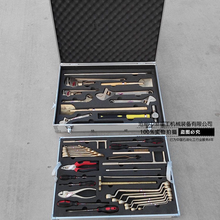 公司生產(chǎn)的防爆工具箱種類齊全,包括:加油站用組合工具箱、油庫(kù)用組合工具箱、天然氣用組合工具箱、礦山搶險(xiǎn)用組合工具箱、檢維修用組合工具箱、成品油計(jì)量工具箱等。  工具箱規(guī)格:7件套、10件套、12件套、16件套、24件套、30件套、32件套、36件套、42件套、50件套、56件套、100件套等。公司還可以根據(jù)客戶的實(shí)際工作需要組合常用的防爆工具套裝。   公司生產(chǎn)的防爆工具有400余個(gè)系列近萬(wàn)種規(guī)格。該產(chǎn)品能有效的防止工具與工作物相互摩擦、撞擊時(shí)產(chǎn)生的可燃性爆炸,確保財(cái)產(chǎn)和人身安全。廣泛用于石油、化工、礦山、防恐怖、防磁場(chǎng)、煤礦、采氣、油氣管道、發(fā)電、冶金、航空、儲(chǔ)運(yùn)、制藥、制氣、塑料、化纖、皮革、煙火、爆竹等行業(yè)。