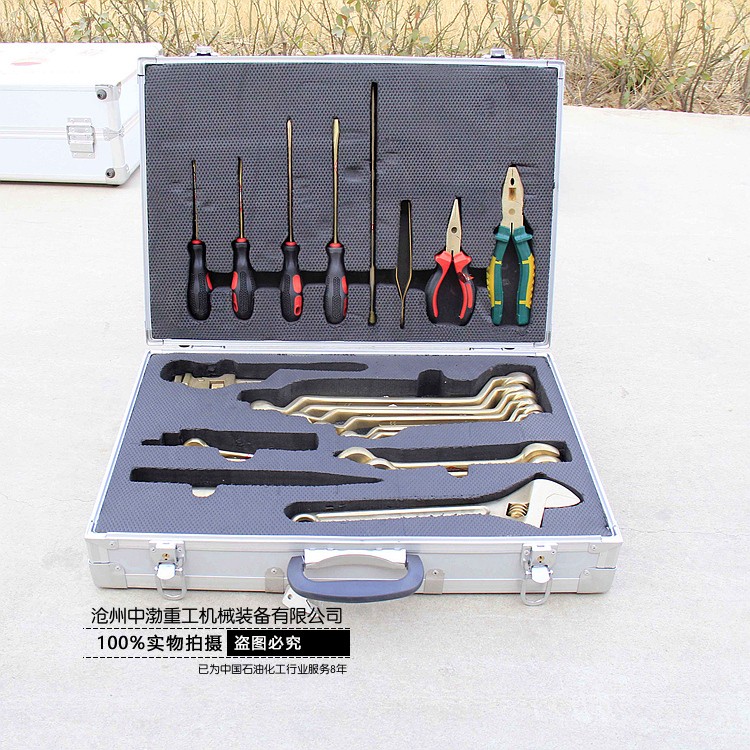 公司生產(chǎn)的防爆工具箱種類齊全,包括:加油站用組合工具箱、油庫用組合工具箱、天然氣用組合工具箱、礦山搶險用組合工具箱、檢維修用組合工具箱、成品油計量工具箱等。  工具箱規(guī)格:7件套、10件套、12件套、16件套、24件套、30件套、32件套、36件套、42件套、50件套、56件套、100件套等。公司還可以根據(jù)客戶的實際工作需要組合常用的防爆工具套裝。   公司生產(chǎn)的防爆工具有400余個系列近萬種規(guī)格。該產(chǎn)品能有效的防止工具與工作物相互摩擦、撞擊時產(chǎn)生的可燃性爆炸,確保財產(chǎn)和人身安全。廣泛用于石油、化工、礦山、防恐怖、防磁場、煤礦、采氣、油氣管道、發(fā)電、冶金、航空、儲運(yùn)、制藥、制氣、塑料、化纖、皮革、煙火、爆竹等行業(yè)。