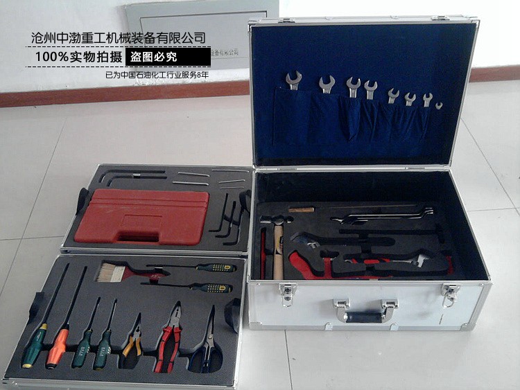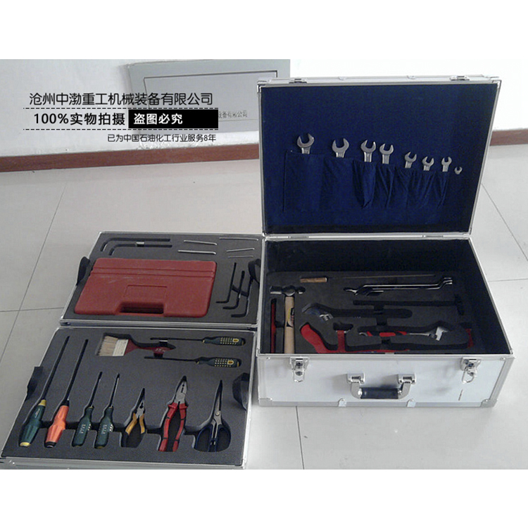 棧橋工具箱配置有盒裝套筒扳手、活扳手、雙頭梅花扳手、雙頭呆扳手、圓頭錘、管鉗、克絲鉗、尖嘴鉗、螺絲刀、鏨子等常用工具,同時配備了內(nèi)六角扳手,開桶扳手,手鋸,毛刷,剪刀,銼刀等工具,使棧橋工具箱功能更為豐富,完全滿足石油棧橋安裝和維護時的作業(yè)需要。棧橋工具箱配置的工具都為防爆工具,保證工具在使用過程中與其他設備和工件碰撞時不產(chǎn)生機械火花,不會引燃正在裝卸的成品油和石油棧橋周圍的油氣混合物,保證棧橋上作業(yè)的安全。