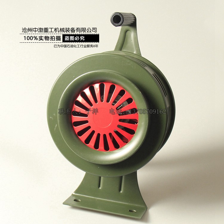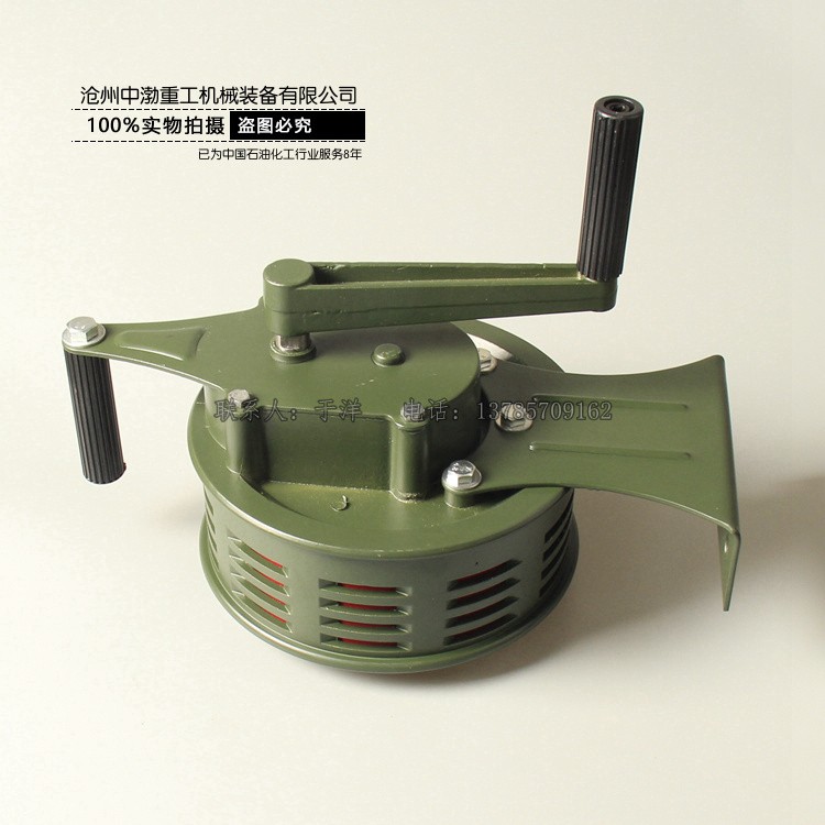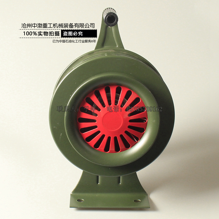 手搖警報(bào)器無需電源,可 以在無電源支持的都場(chǎng)所提供一種有效的報(bào)警。只需通過人工用手順時(shí)針方向搖動(dòng)手柄,速度達(dá)到初級(jí)(50-80轉(zhuǎn)/分)就可達(dá)到理想的報(bào)警效果,發(fā)出的聲音 尖銳,震撼力大、穿透力強(qiáng)。警報(bào)聲音大小取決于手柄搖動(dòng)的速度,新款手搖警報(bào)在音窗口設(shè)置檔板快門機(jī)制,可以迅速關(guān)閉音窗口,阻斷聲音,產(chǎn)生不同的信號(hào)。 (老款產(chǎn)品不具備此項(xiàng)功能!)手搖警報(bào)器體積小、重量輕、便于攜帶、安裝方便,不需要任何工具。只需0.15平方米的面積和人站立的地方就可以正常操作 了,流動(dòng)性作業(yè)非常強(qiáng)。民防、部隊(duì)、看守所、監(jiān)獄、礦山、機(jī)場(chǎng)、草場(chǎng)、油庫、倉庫、賓館、酒店等企業(yè)單位在發(fā)生危急情況下使用的一種理想報(bào)警設(shè)備。