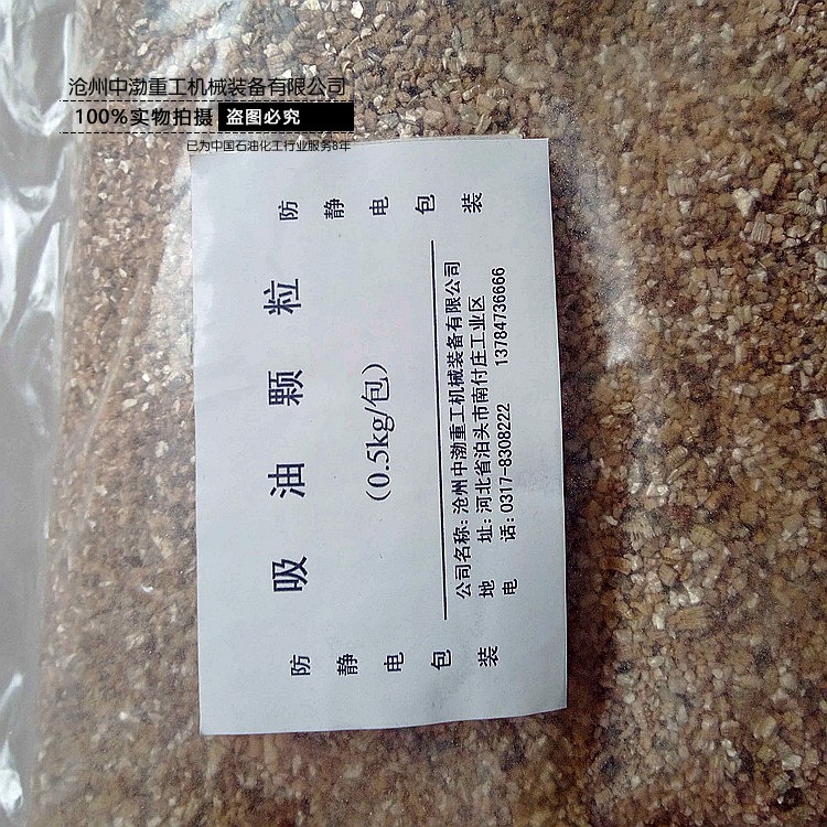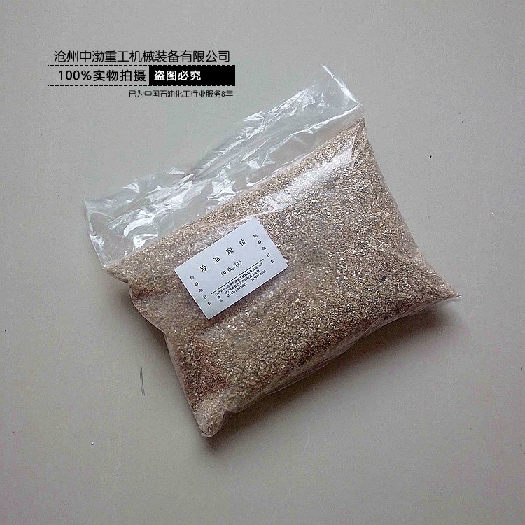 吸附顆粒顆粒內(nèi)部呈多微孔狀結(jié)構(gòu),對(duì)柴油、汽油、機(jī)油、二號(hào)浮選油、甲苯、二甲苯、煤油、硝苯、甲醛、甲醇、乙醇等泄漏污染物具有很強(qiáng)的吸附能力,能吸附相當(dāng)于其重量6倍的污染物液體(每公斤吸液顆??晌郊s5-6公斤的油類及化學(xué)液體),為陸上及海上油類泄漏污染應(yīng)急吸液處理提供了一種成本低廉、環(huán)保的清理方案。